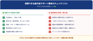 給付金サポート業界には悪質業者も存在します。以下のチェックリストでPOOL BOXを確認してみましょう。