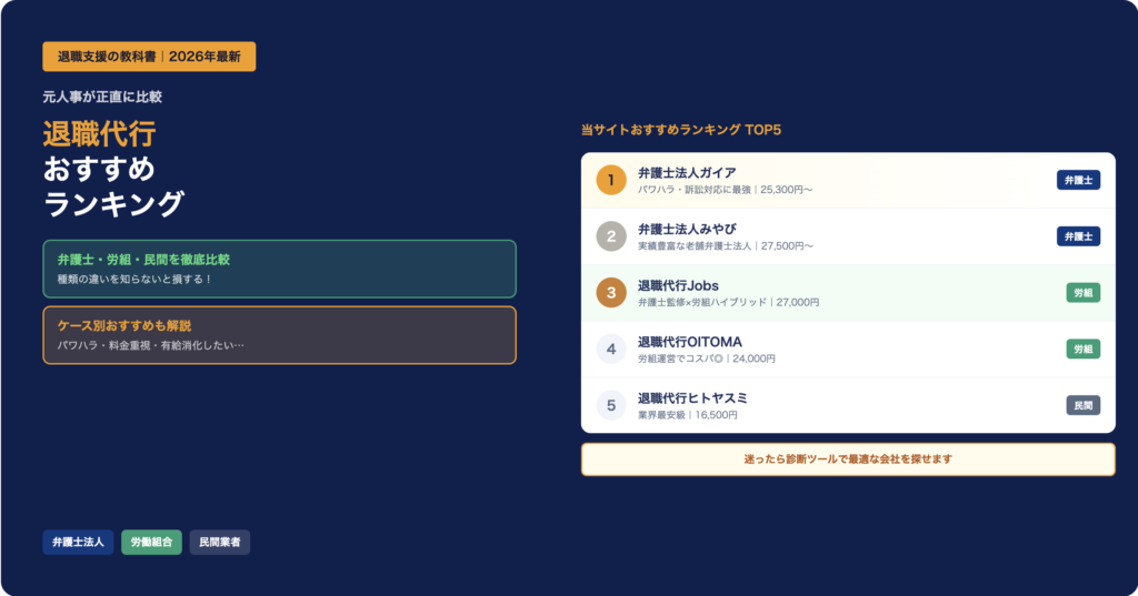 退職代行おすすめランキング2026|弁護士・労組・民間を元人事が比較