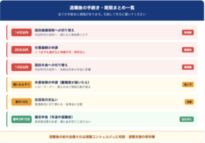 ・国民年金切り替え:退職翌日から14日以内→役所へ