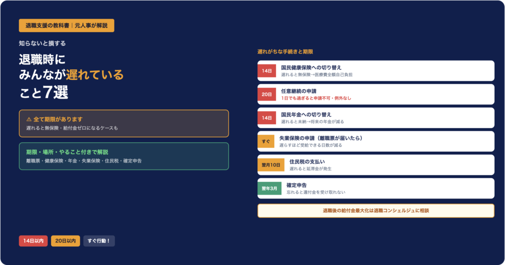 退職後の手続きには全て期限がある。遅れると何が起きるか