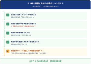 ただし退職前に「傷病手当金の申請」「診断書の取得」「有給消化」「給付金の確認」をしっかりやっておくことで、退職後の生活の不安を大きく減らすことができます。